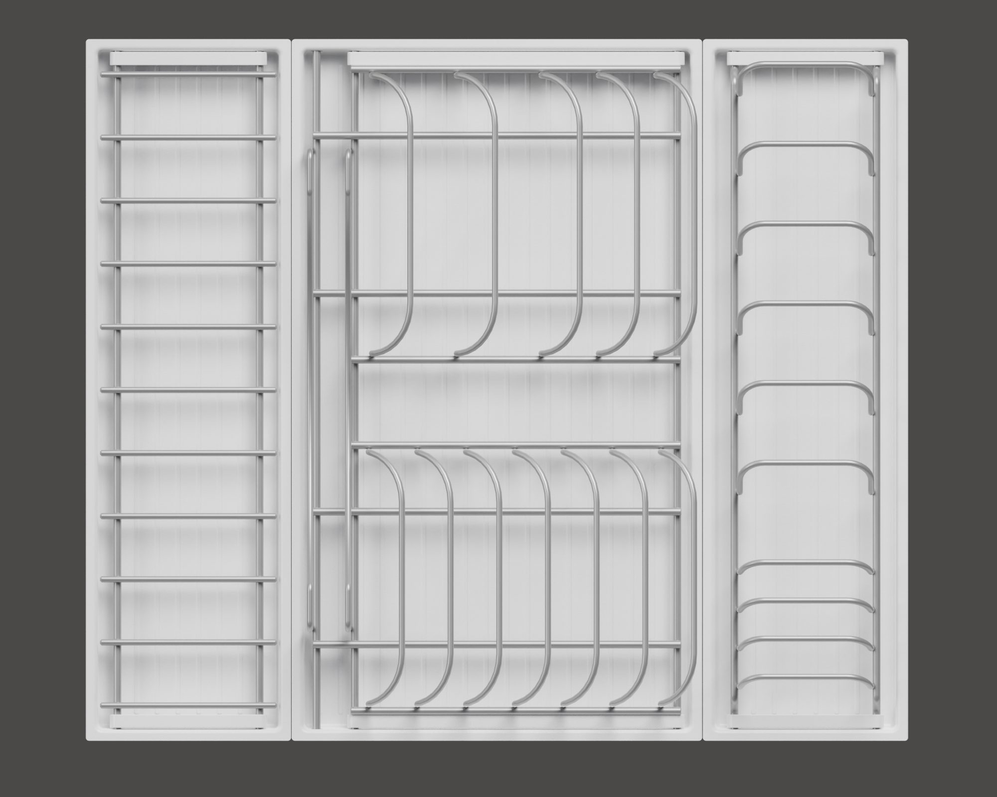 • 1 большой модуль для посуды + 1 большой модуль с решеткой + модуль для столовых приборов
