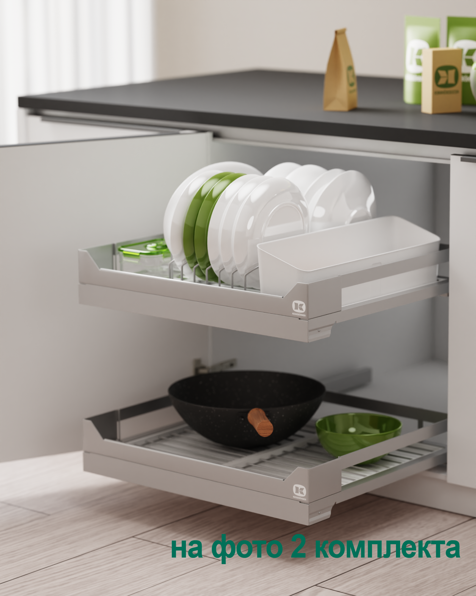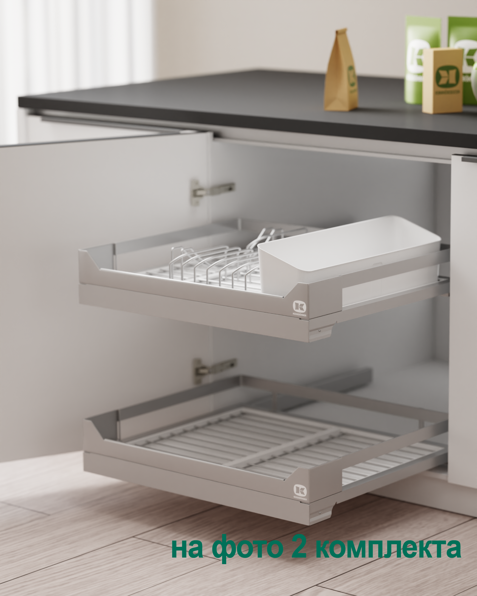 1 для посуды большой (423 x 248 мм, стоит из 1 х держатель металлический, 1 х поддон пластиковый, 2 х защелка-ограничитель)