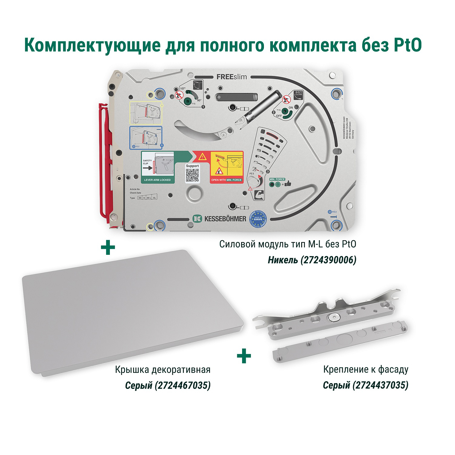 Полный комплект подъемного механизма ФриСлим ФЛАП с доводчиком для накладного монтажа, цвет СЕРЫЙ Kessebohmer | официальный магазин