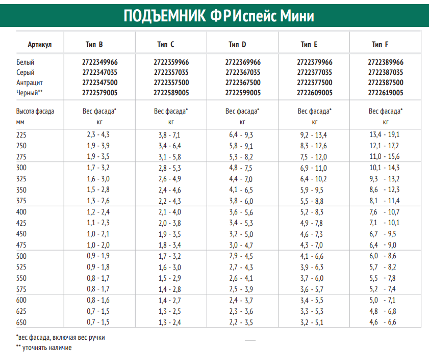 Подбор подъёмных механизмов Kesseböhmer