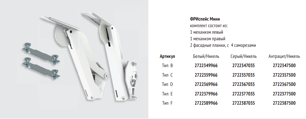 Подъемные механизмы семейства FREE SLIM
