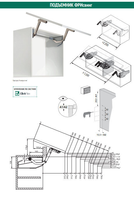 При выборе максимальной ширины фасада 1200 мм в комплект добавляется штанга 1074 мм
